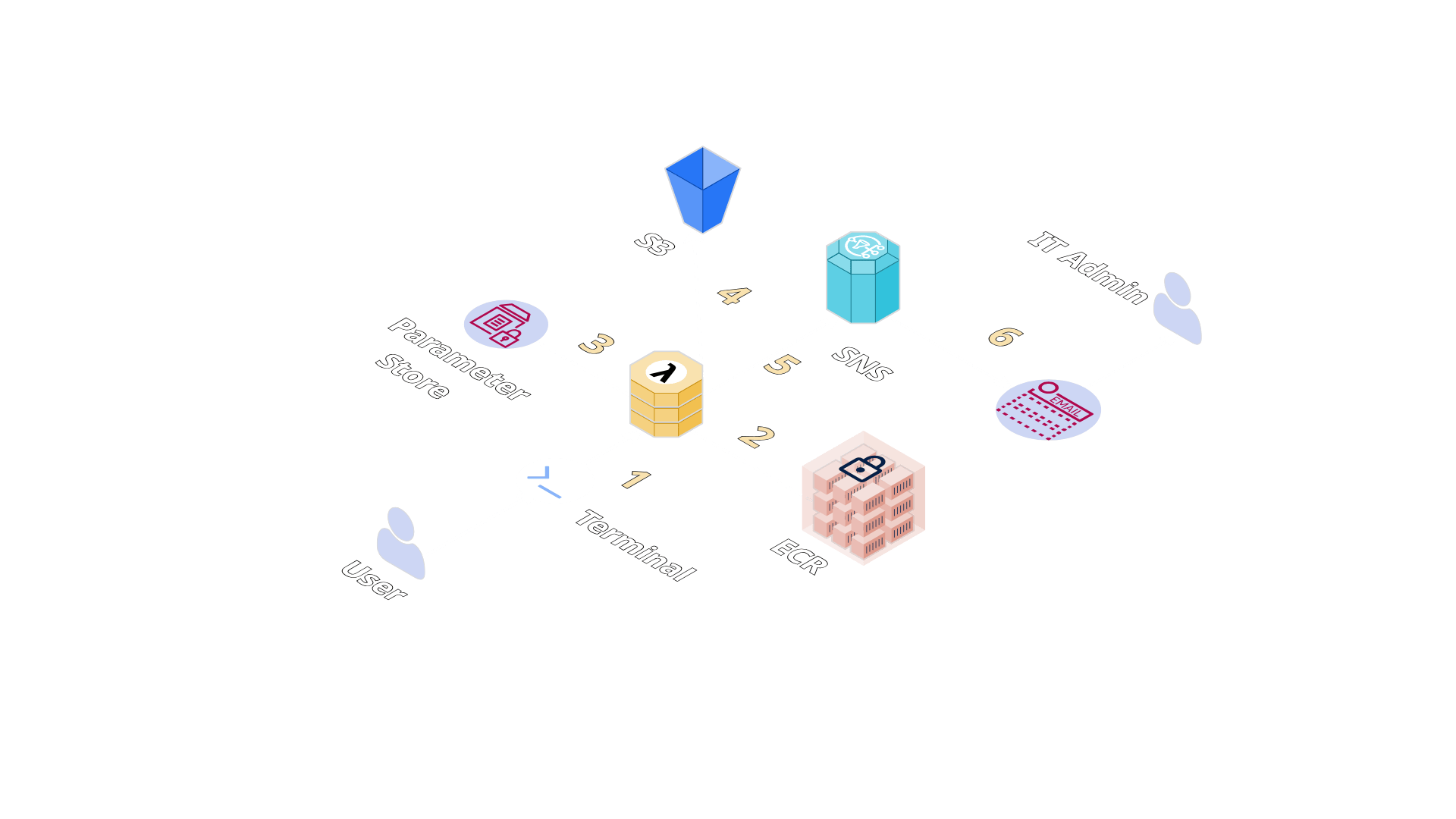 Ejecución de la función Lambda (1,2,3): La función Lambda realiza el escaneo de seguridad de los buckets S3 en la cuenta de AWS. Puede ser ejecutada manualmente desde la Consola o el CLI de AWS, requiriendo que el usuario tenga credenciales de acceso configuradas en su equipo. Al ejecutarse, Lambda recupera los parámetros necesarios para las tareas desde Parameter Store y carga el código del escáner, el cual está almacenado como un lambda container en un repositorio ECR.
